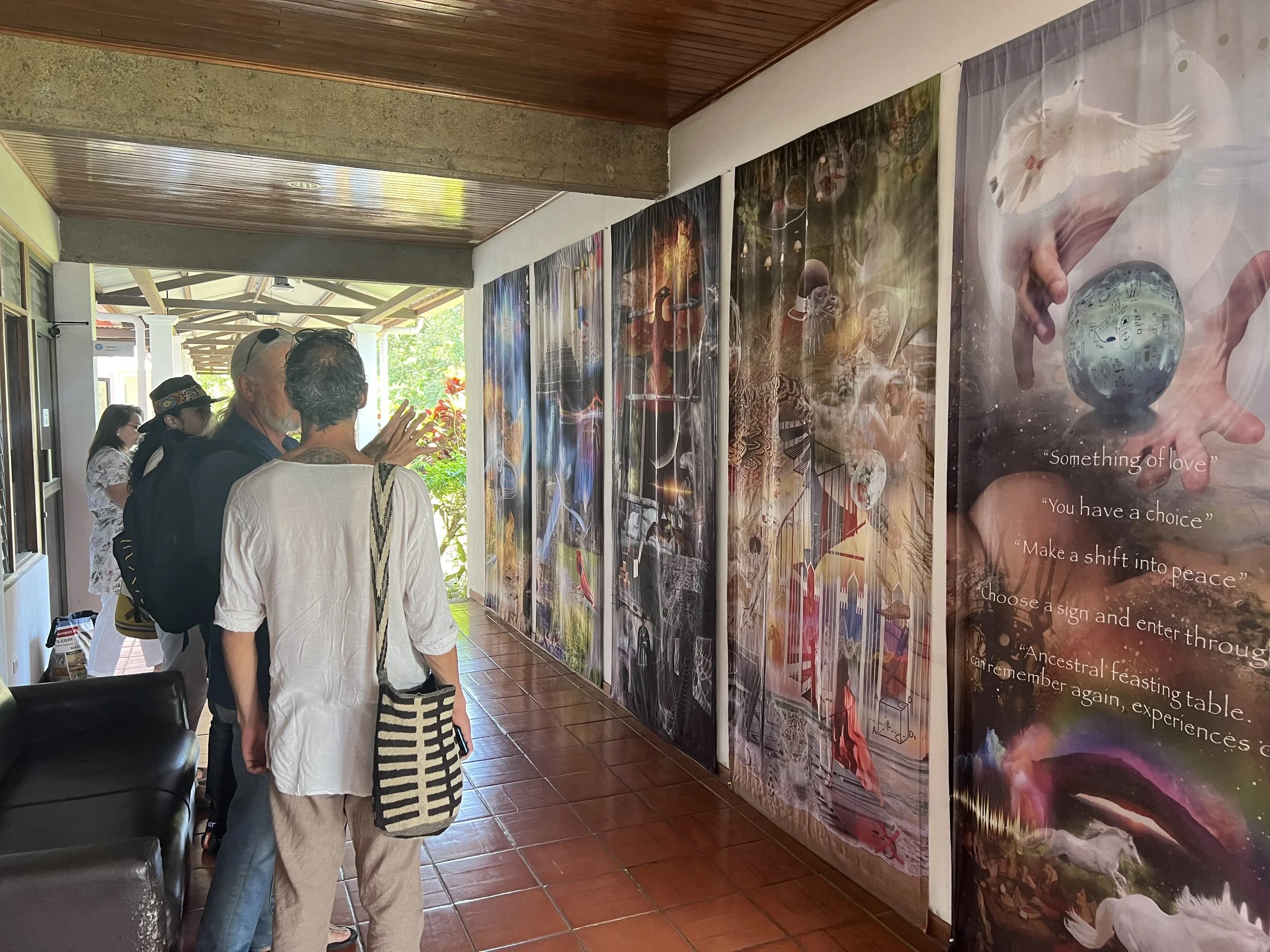 pictured: “Dream Banners” from the class Bridging Paradigms: The Role of Dreams in a hallway at the University for Peace. Created by Veronica Coetzer.